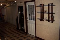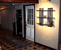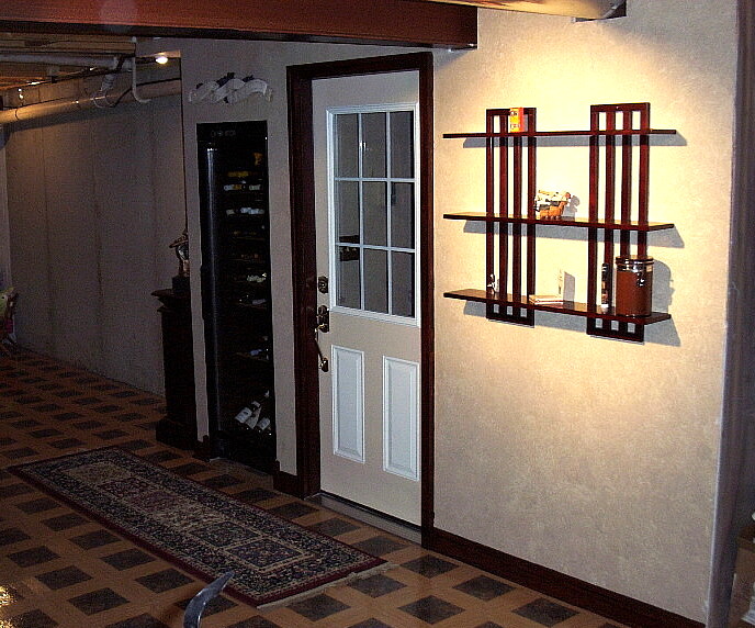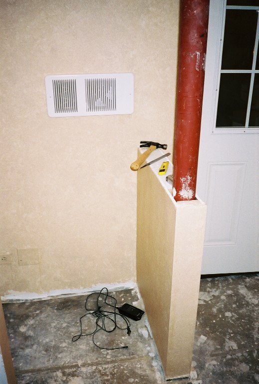 This is the half-wall. The poll will be finished in a Mahogany wrap, with a beveled mahogany shelf. To the left there will be a humidifier unit. Build into the wall is the 240v heater. Both the humidifier and heater are thermo/humistatically controlled by a unit on the opposite side of the door.
