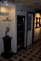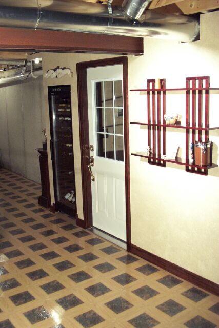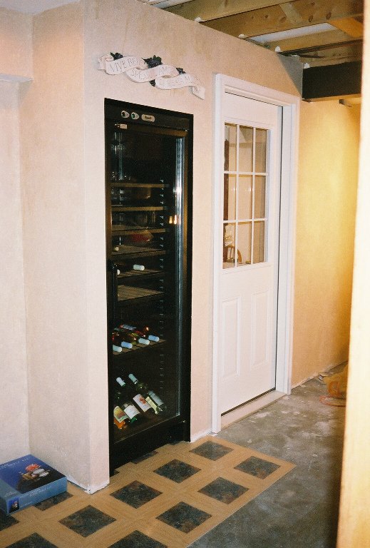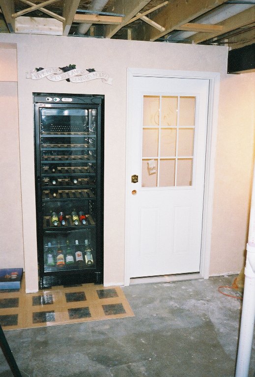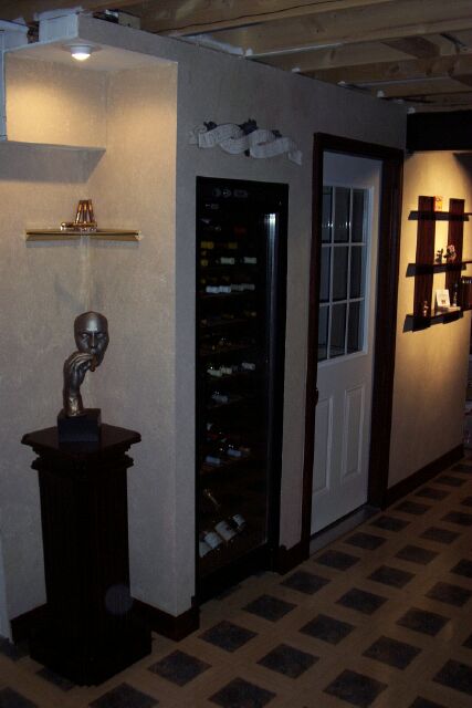 Here's the semi-finished wine cooler section. There's exactly 1" around the cooler for air circulation, and the inside of the closet is painted black to give a "trim" effect to the unit. I still have to level the Cooler, and add baseboard trim. I also had to install the flooring in that area so the cooler can go on top of it.
