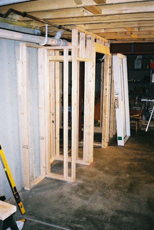 Here's the rough framing of the wine cooler closet. There was little margin for error so I think I remeasured everything a dozen times before assembling the framing together.