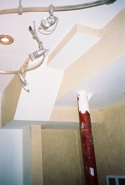 Here's another look at the soffits when finished. It was a lot of intricate work as far as rough framing was concerned, but it was worth it. Not only is the ceiling insulated and sealed, but the multi-layered look adds a nice texture to this small room.