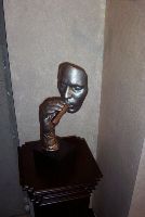 Here's the Austin Sculpture atop a solid mahogany pedastal. A small spotlight from above highlights the piece, as well as the glass shelf above it.